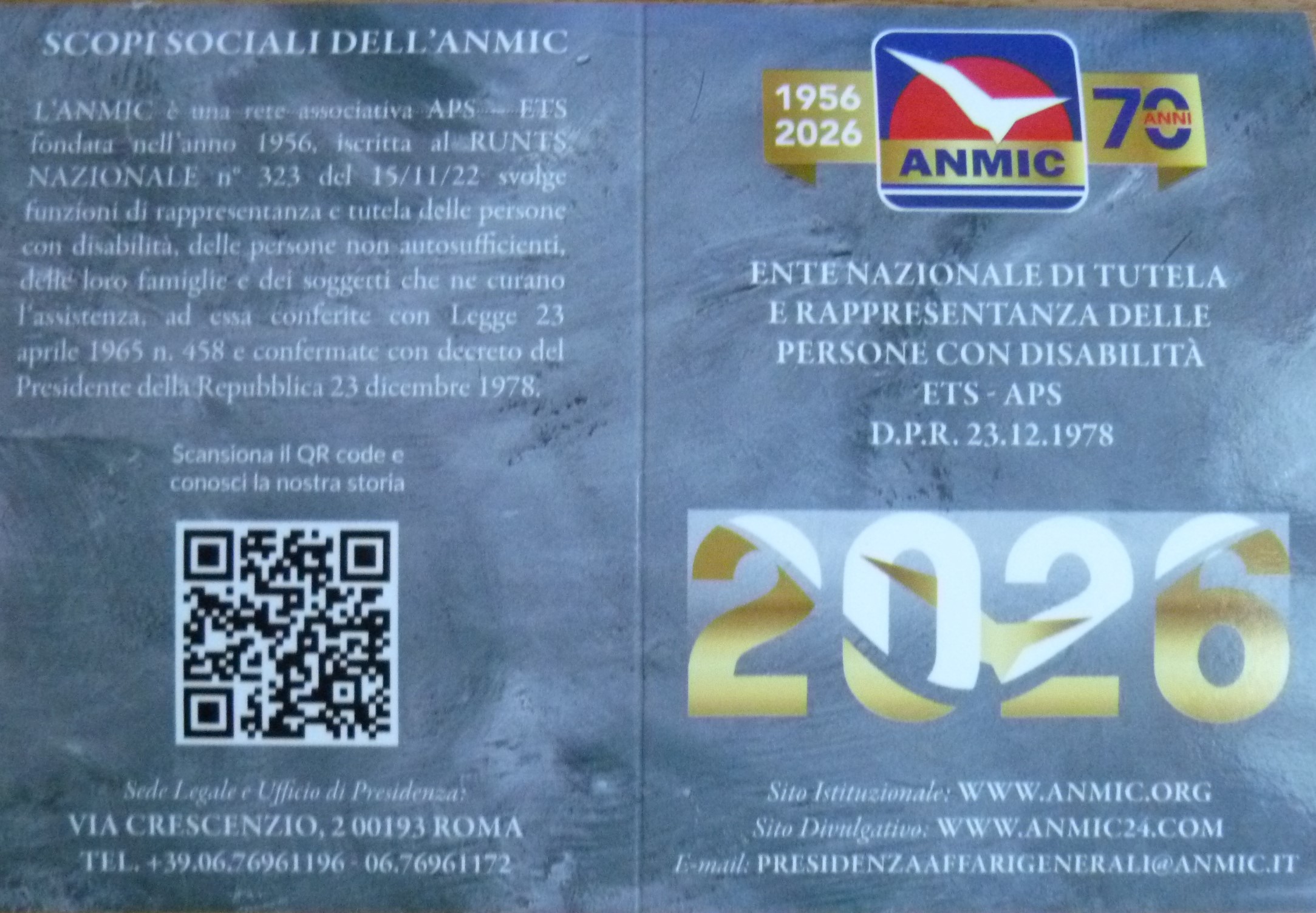 Per tutti coloro invece che rinnoveranno  la tessera associativa entro la fine di gennaio, presso la sede di Como, in omaggio il calendario ANMIC 2026. Offerta valida fino ad esaurimento scorte.