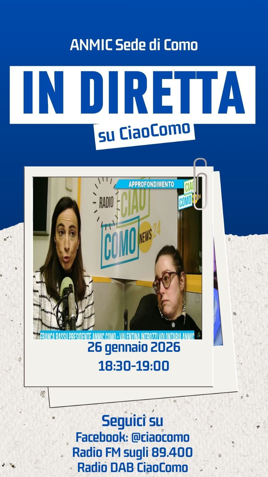 Lunedì 26 gennaio dalle 18.30 alle 19.00 ci vediamo in diretta su CiaoComo.